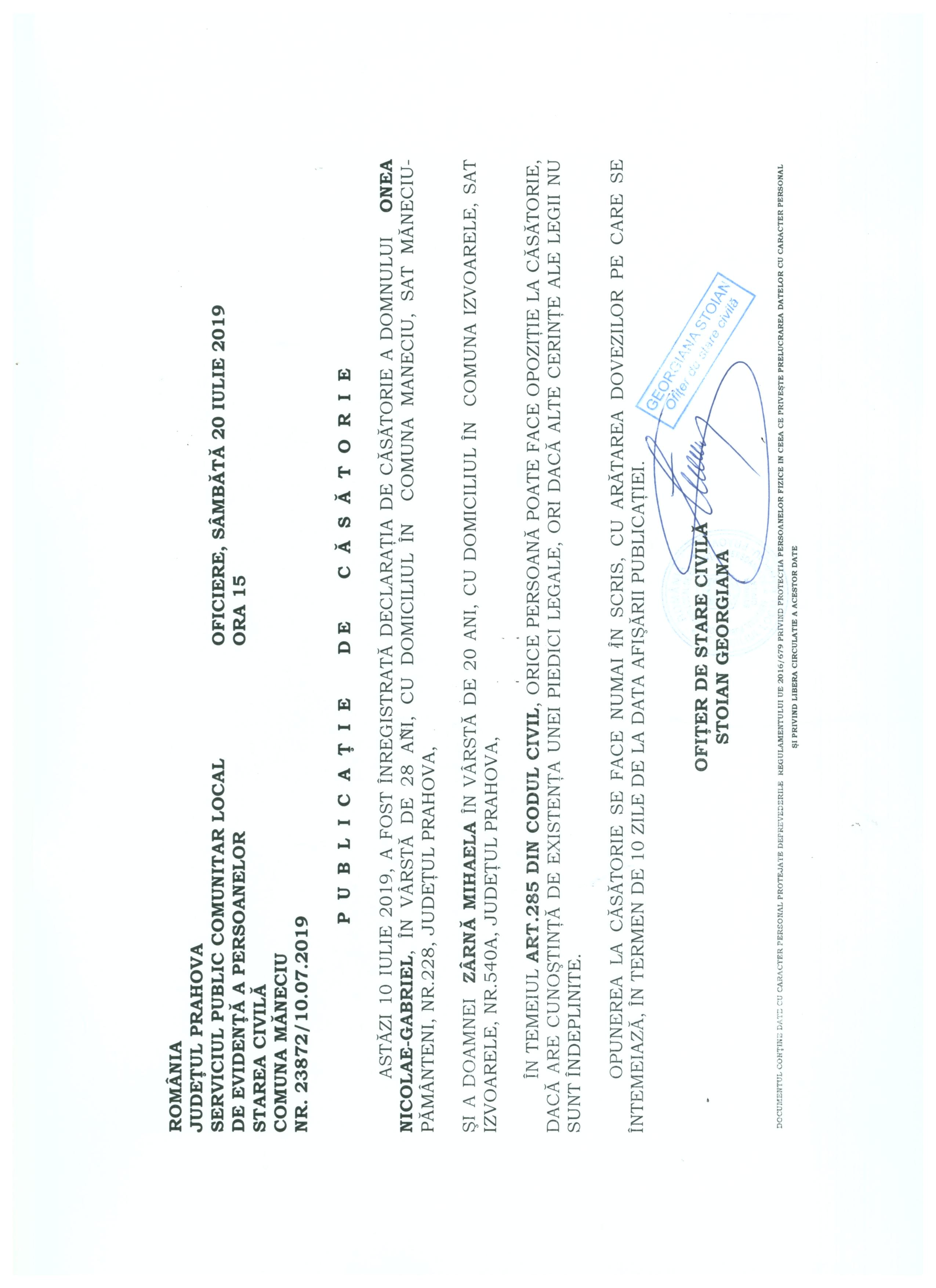 Publicație de Căsătorie 25.09.2024 (Nr.319)